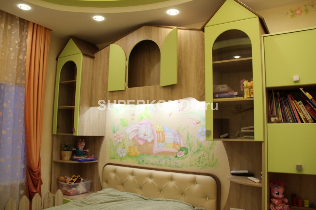 Кровать, Стол, Стеллаж, Антресоли, Стенка