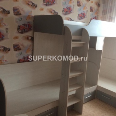 Наткнулись на фото мебели на заказ от компании «Суперкомод», когда для детей в комнату искали двухъярусную кровать в качественном и безопасном исполнении. Выбрали вариант на сайте, но нам надо было подогнать размеры индивидуально, плюс расцветку поменять. Спасибо менеджеру Андрею — подробно проконсультировал о порядке работы, материалах, расценках и сроках изготовления мебели. Заключили договор, предоплату внесли только 50%, а на остальную сумму еще и рассрочку беспроцентную дали. Сделали кровать нам за 3 недели, хотя по срокам стояло 4 недели.