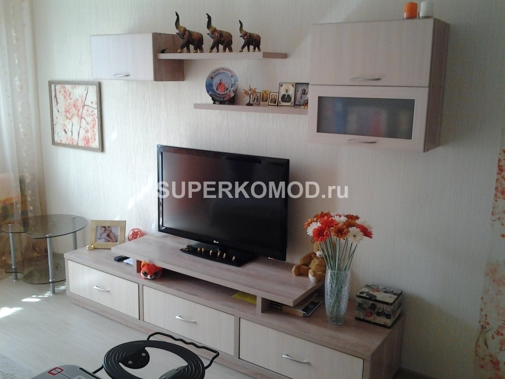 Наша компания занимается изготовлением мебели для гостиной на заказ. На фото вариант с подвесной тумбой.