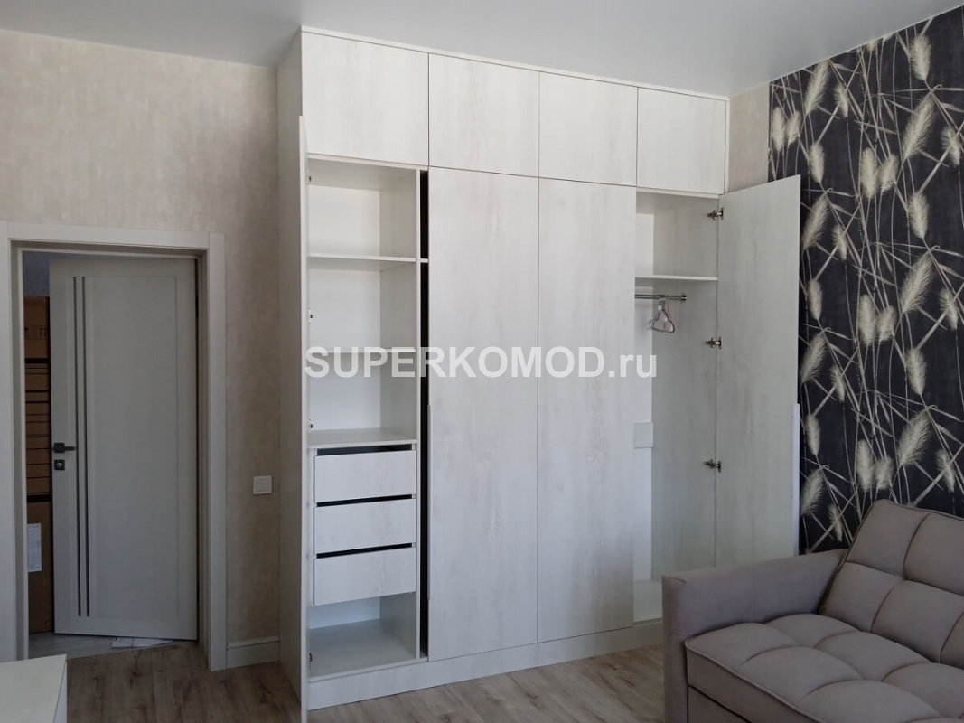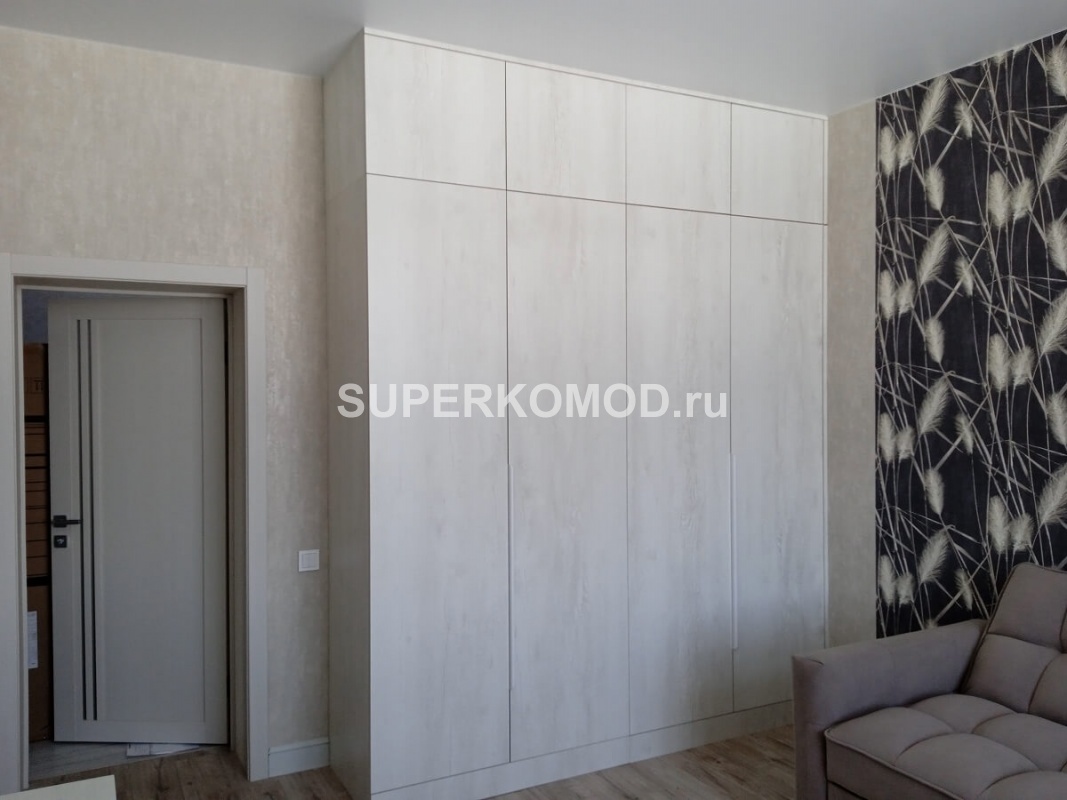 Шкаф высокий на четыре секции с антресолями. Ручки встроенные. Подойдет для спальни и гостиной.