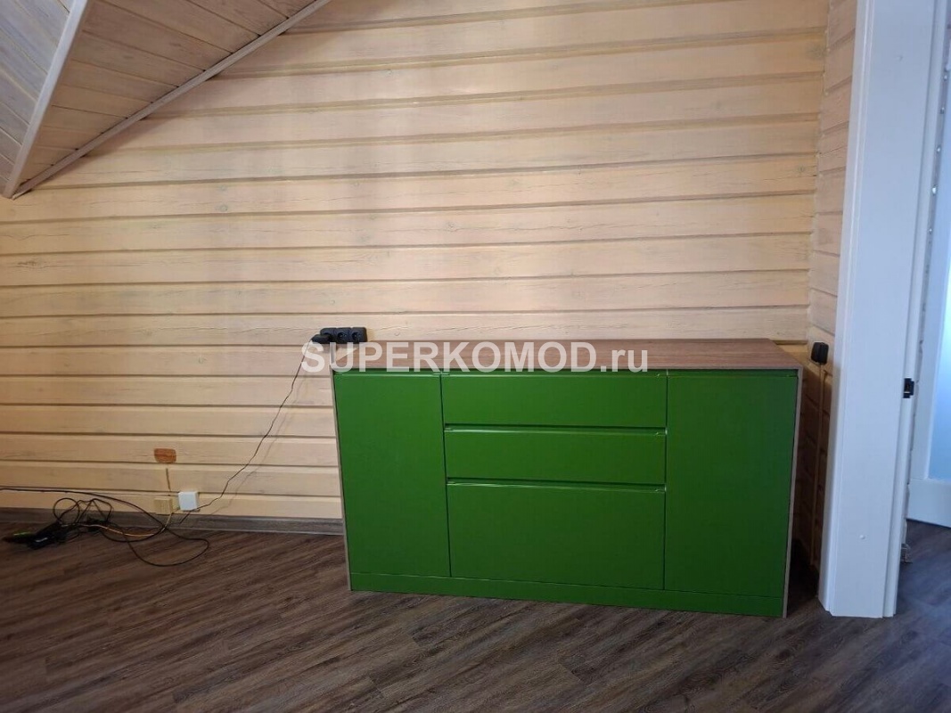 Вместительный комод с распашными дверцами и выдвижными ящиками, ручки интегрированные.