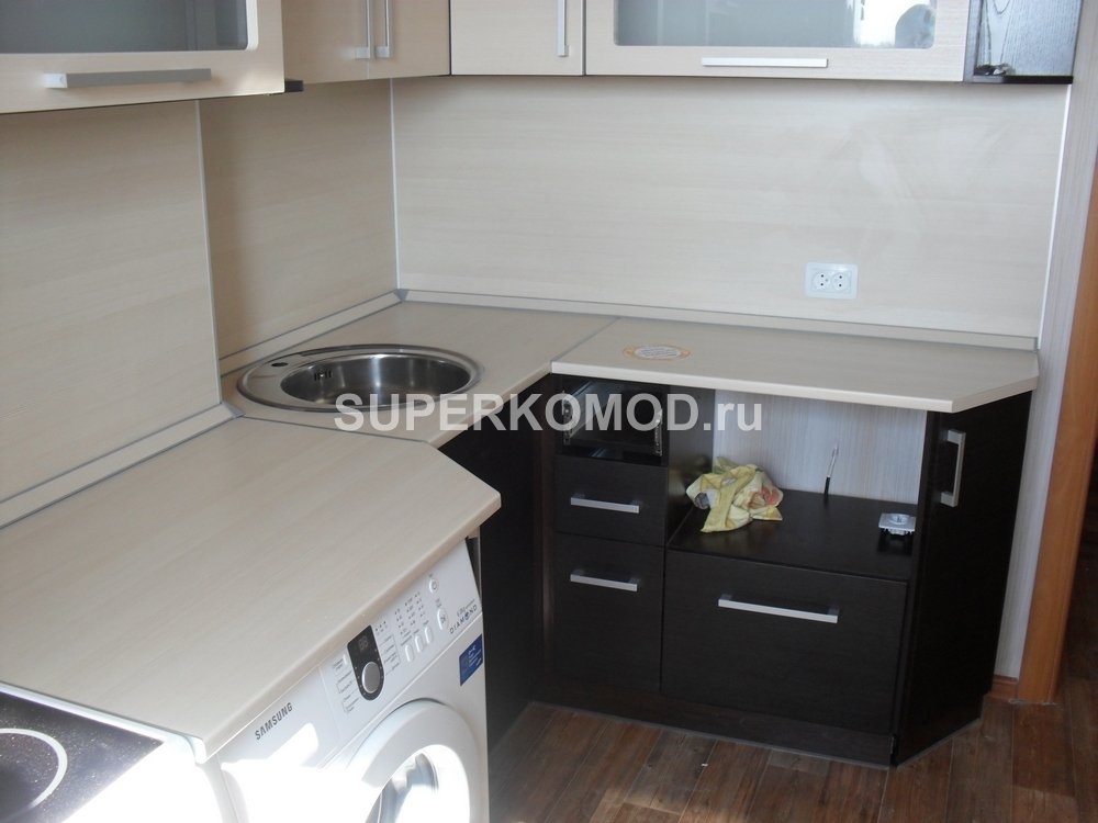 Кухня темного со светлым цветов с ручками металлик и встроенной техникой №1903