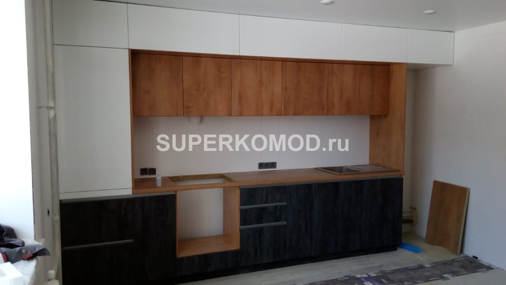 Прямая кухня в современном стиле со встроенной вытяжкой №2126