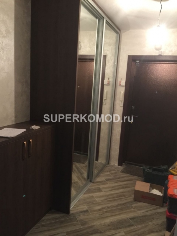 Наша компания занимается изготовлением шкафов на заказ. На фото вариант с зеркалом и крючками для одежды.